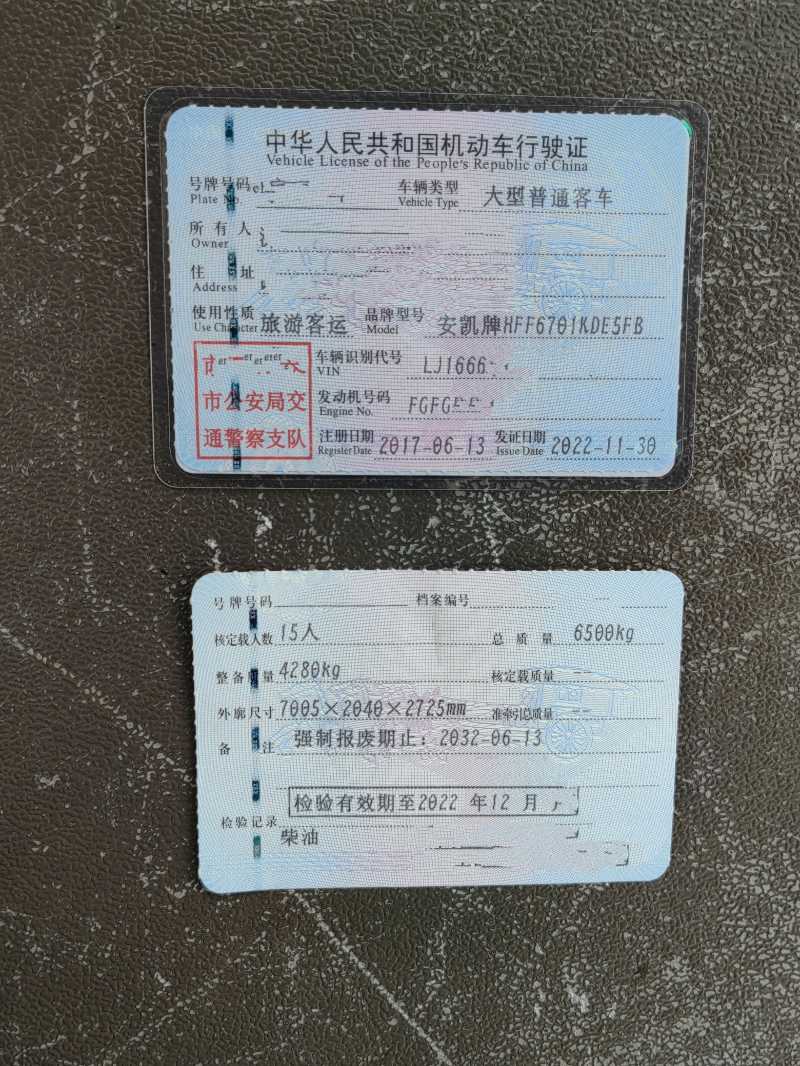 | 客车品牌 | 安凯客车 | 上牌时间 | 2017-06-22 |