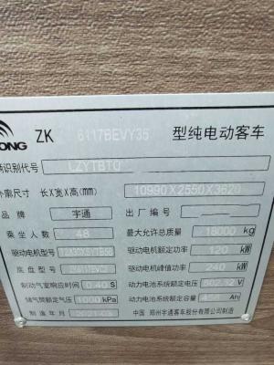 2021年4月上牌的新能源纯电动宇通6117气囊,48座,中门,宁德时代229度高密电池,电池加热,续航300公里左右,大型高一级,有公告,营运档案可提,两台同款,公里数5万左右。