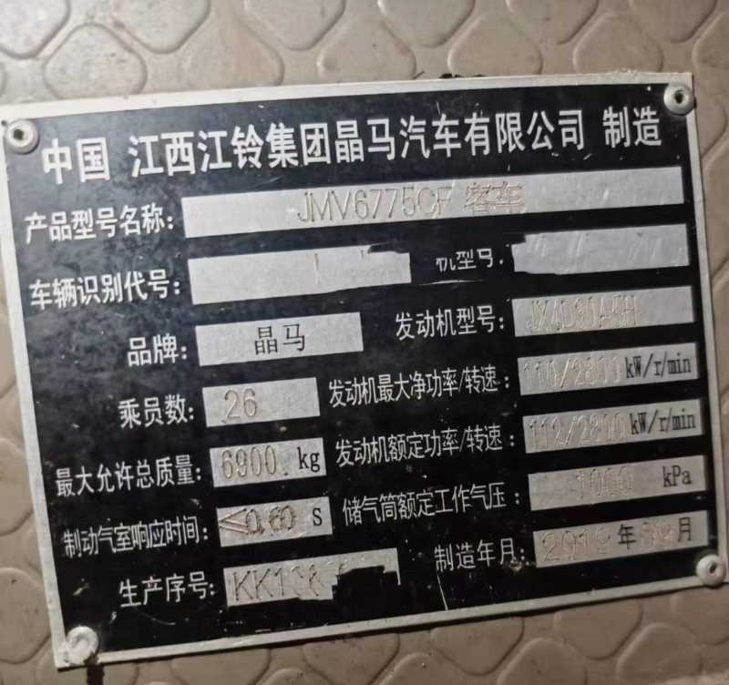 | 客车品牌 | 晶马客车 | 上牌时间 | 2019-11-20 |