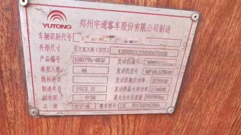 | 客车品牌 | 宇通客车 | 上牌时间 | 2013-12-19 |