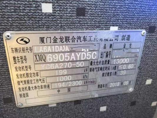 | 客车品牌 | 金龙客车 | 上牌时间 | 2018-10-16 |