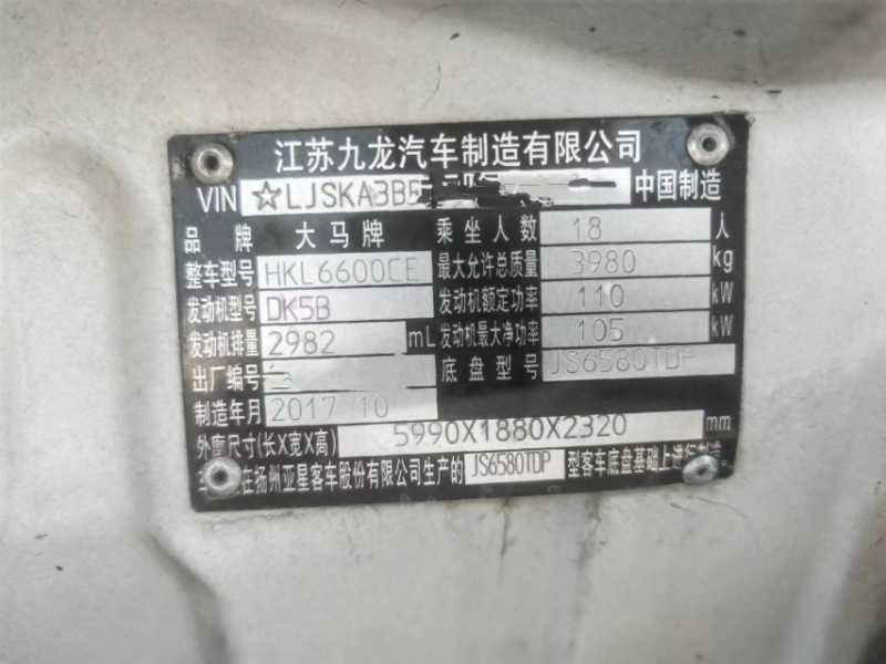 | 客车品牌 | 九龙客车 | 上牌时间 | 2017-11-23 |