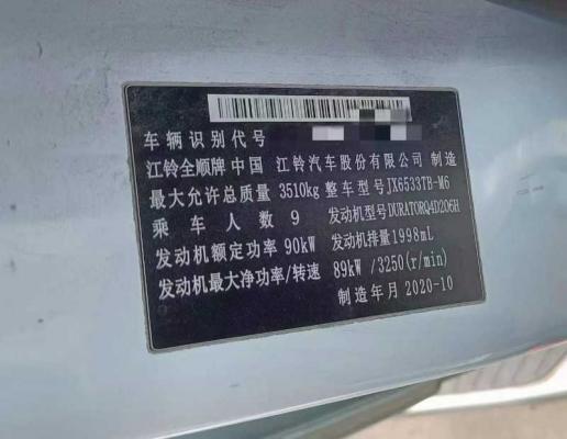 | 客车品牌 | 江铃全顺 | 上牌时间 | 2020-05-19 |