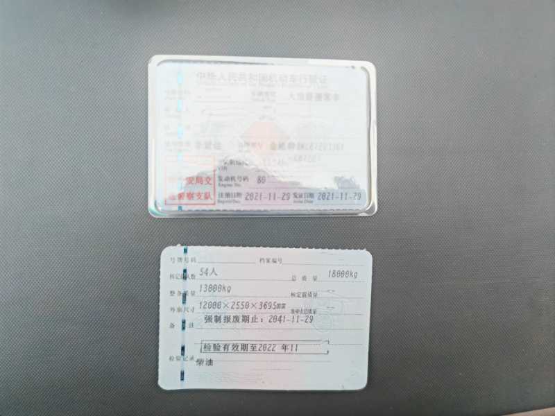 国六排放全国飞,2021年11月上牌金旅6122气囊车,54座有中门,玉柴330国六发动机,可调座椅,木纹地板,司机独立驾驶室,非营运性质,4万公里准新车。