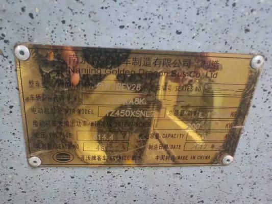 | 客车品牌 | 南京金龙 | 上牌时间 | 2017-08-22 |