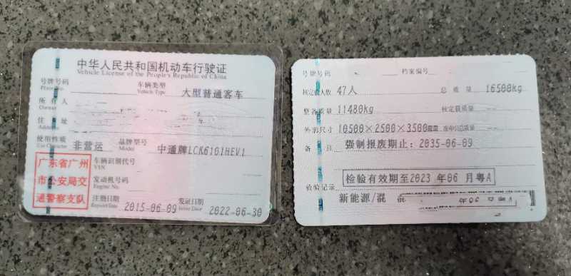 粤A户接送包车利器超级靓货非营运中通6101,47座可过户可提档新能源绿牌2015年6月上牌,国四排放 油电混合动力,无级变速波箱 ,潍柴机头, 双开门 ,前碟后鼓 ,气囊悬挂,车况好,一直在公司做接送,感兴趣来电。