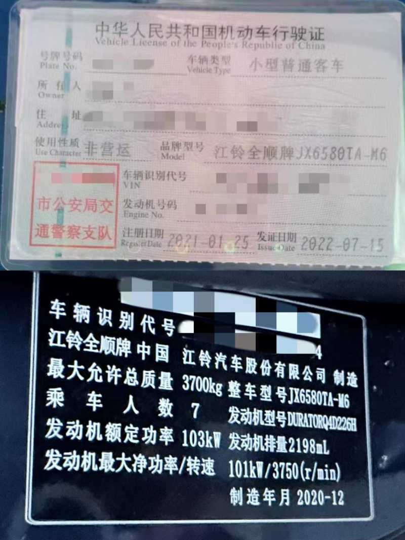 | 客车品牌 | 江铃全顺 | 上牌时间 | 2021-01-21 |