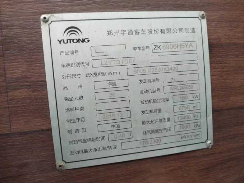 | 客车品牌 | 宇通客车 | 上牌时间 | 2019-01-29 |