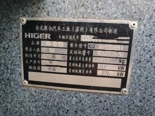 | 客车品牌 | 海格客车 | 上牌时间 | 2017-01-18 |