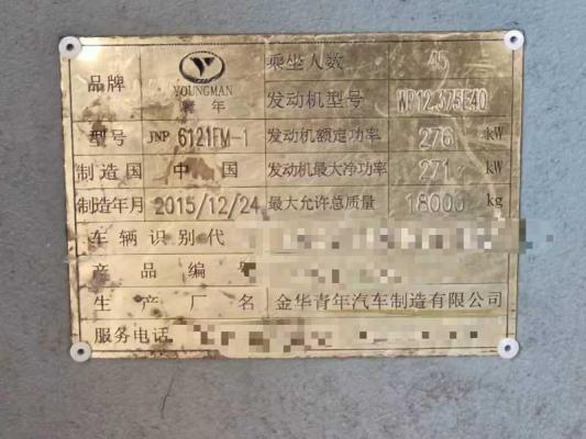 | 客车品牌 | 青年客车 | 上牌时间 | 2016-01-21 |