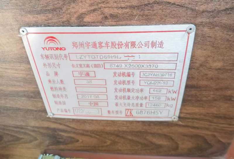 | 客车品牌 | 宇通客车 | 上牌时间 | 2017-08-29 |