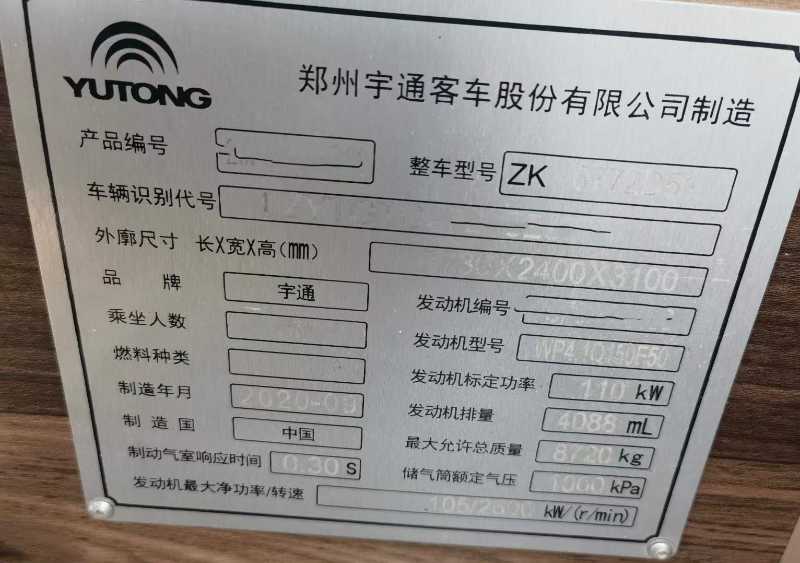 | 客车品牌 | 宇通客车 | 上牌时间 | 2021-02-18 |