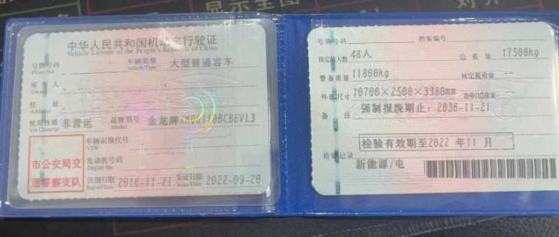 仅此一台最新到货宁德时代大金龙新能源电动大巴,2016年10月上牌金龙6110型48座10.7米大巴,气囊车,有中门,电池加热,宁德时代138度高密电池,表显几万公里,年审保险到2023年10月,非营运性质,随时提档,定金留车.