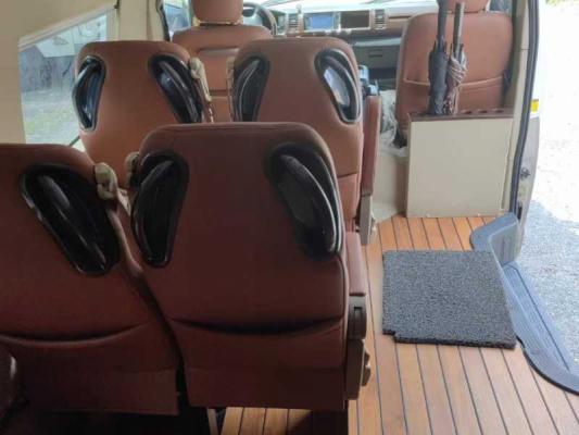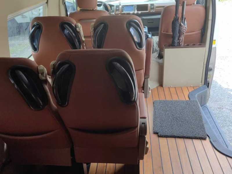 2018年12月上牌,九龙12座,汽油2.0,发动机型号4GA1-2,内饰重金打造,氛围灯,DVD,折叠电视,碳纤维窗帘(也叫石棉窗帘),桃木工作台,雨伞架,柚木地板,220伏顶灯,每个座位都配有USB充电口,皮座椅,租赁性质,