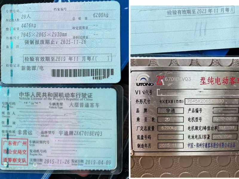 | 客车品牌 | 宇通客车 | 上牌时间 | 2015-11-18 |