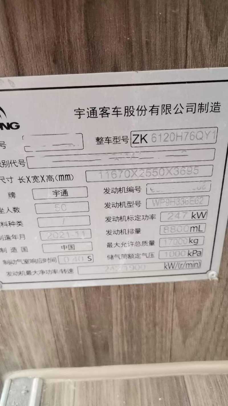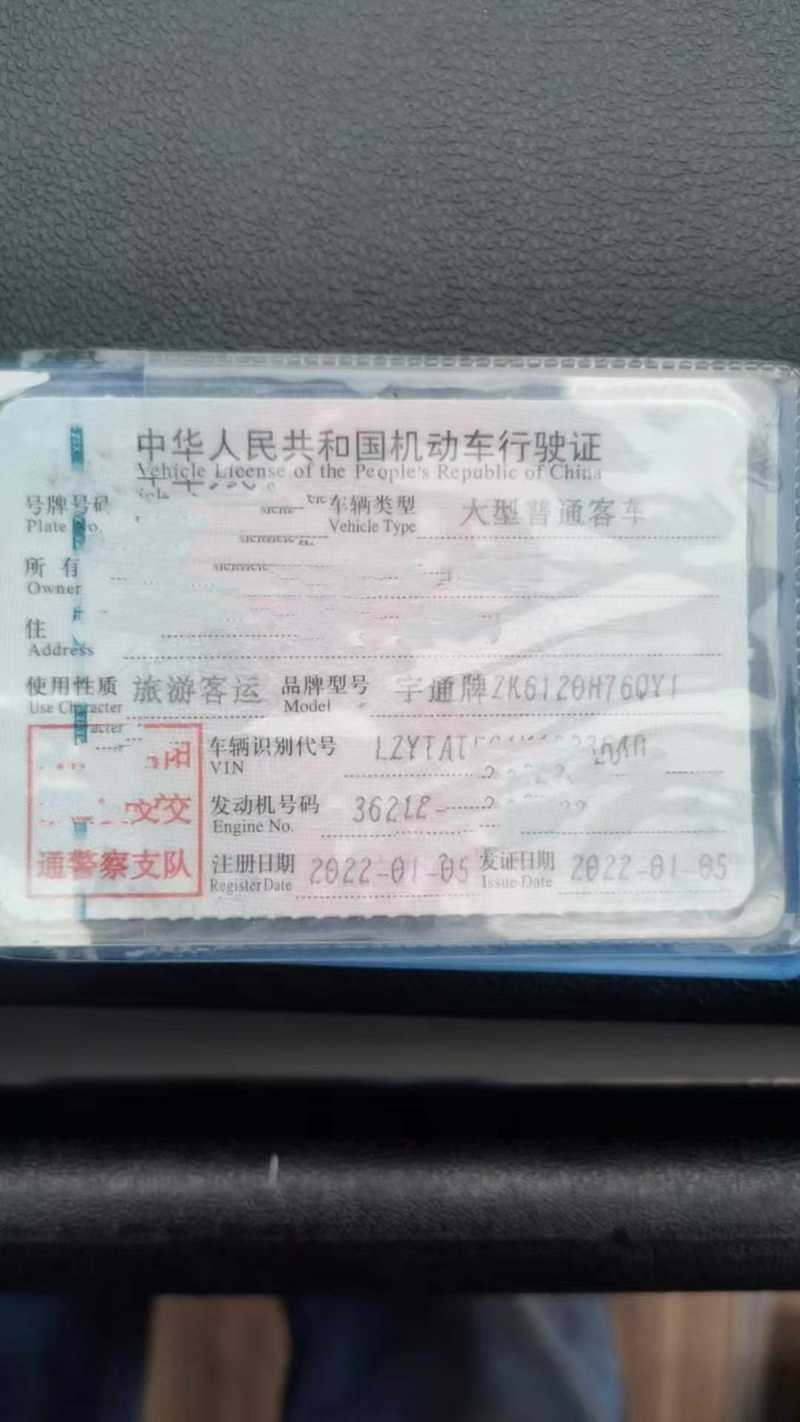 | 客车品牌 | 宇通客车 | 上牌时间 | 2022-01-11 |