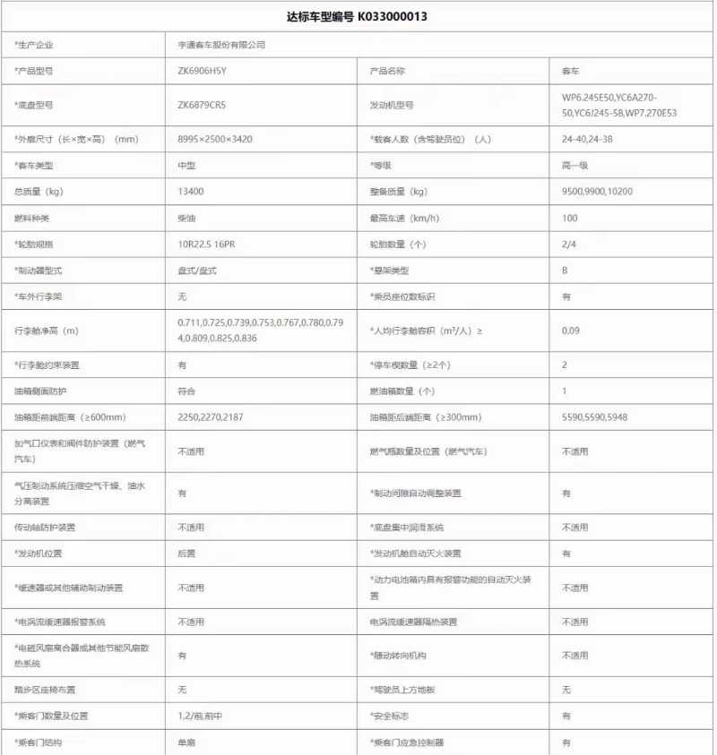 2020年9月 粤牌有公告有营运档案国五38座宇通6906气囊车