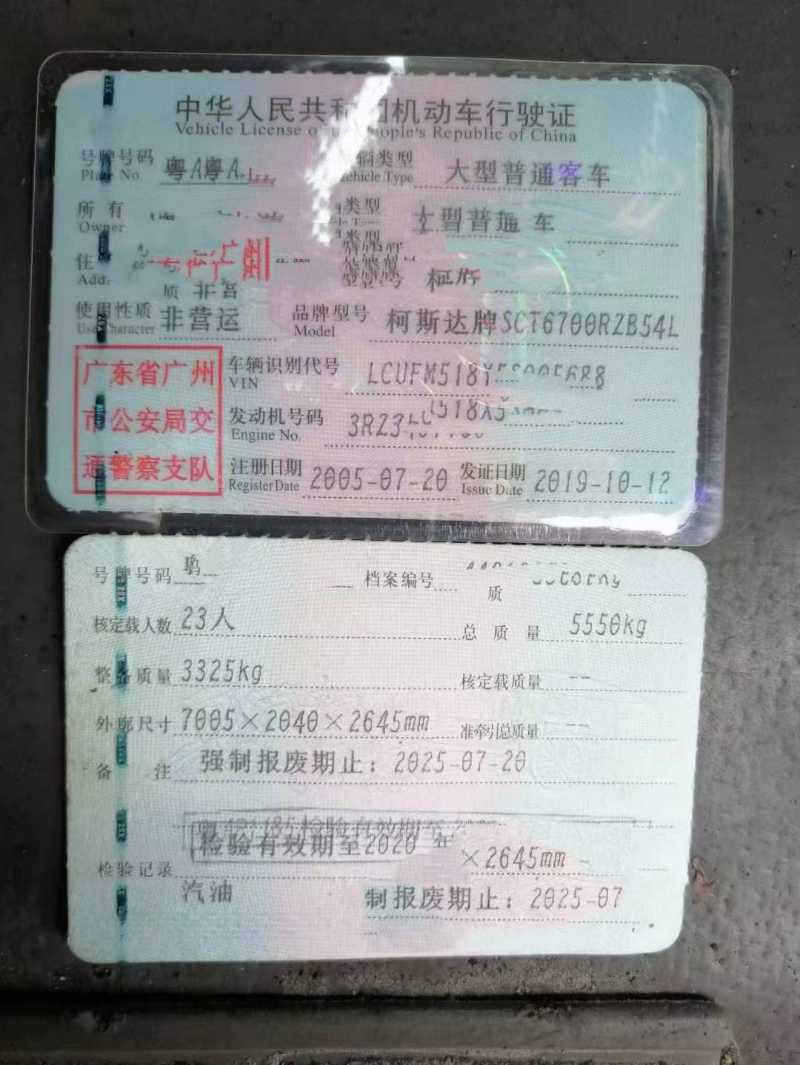 | 客车品牌 | 柯斯达客车 | 上牌时间 | 2005-07-28 |