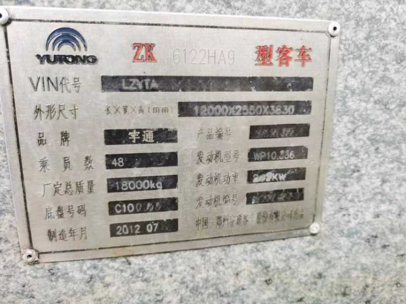 | 客车品牌 | 宇通客车 | 上牌时间 | 2012-08-22 |