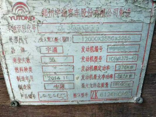 | 客车品牌 | 宇通客车 | 上牌时间 | 2014-12-25 |