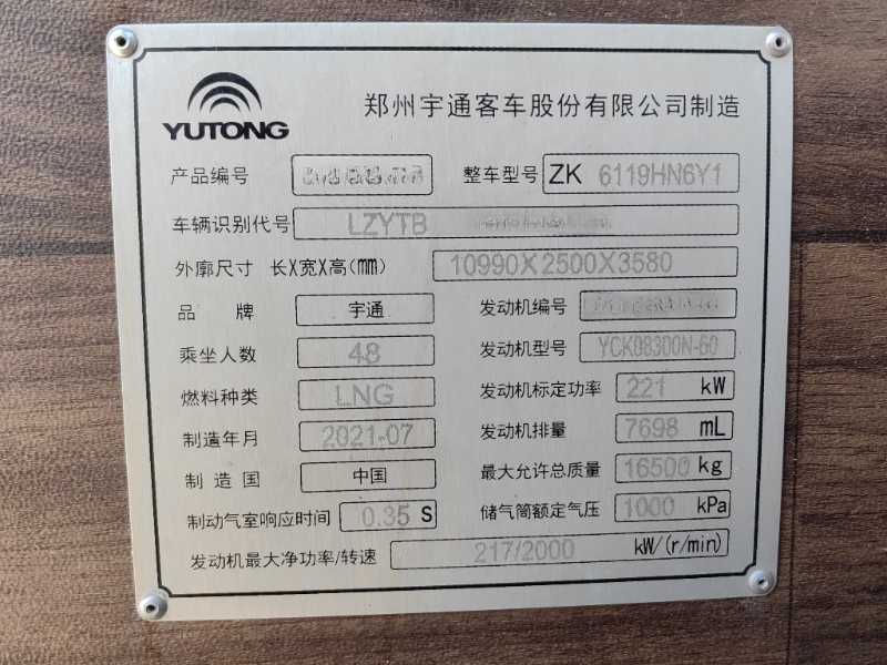 | 客车品牌 | 宇通客车 | 上牌时间 | 2021-10-27 |