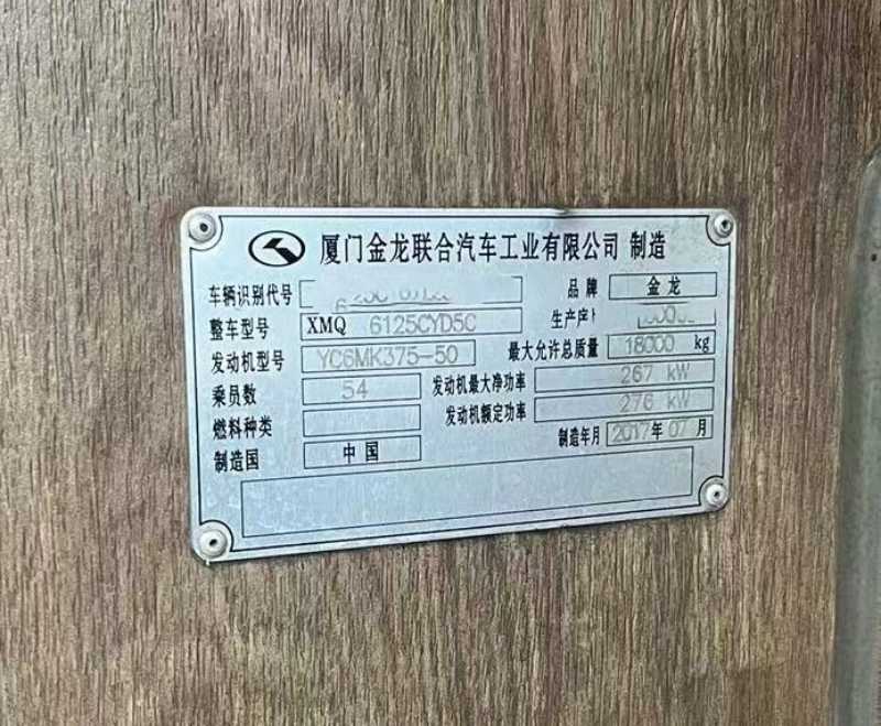 | 客车品牌 | 金龙客车 | 上牌时间 | 2017-08-15 |
