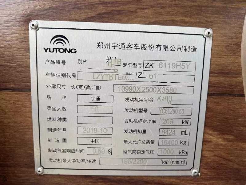 | 客车品牌 | 宇通客车 | 上牌时间 | 2019-11-13 |