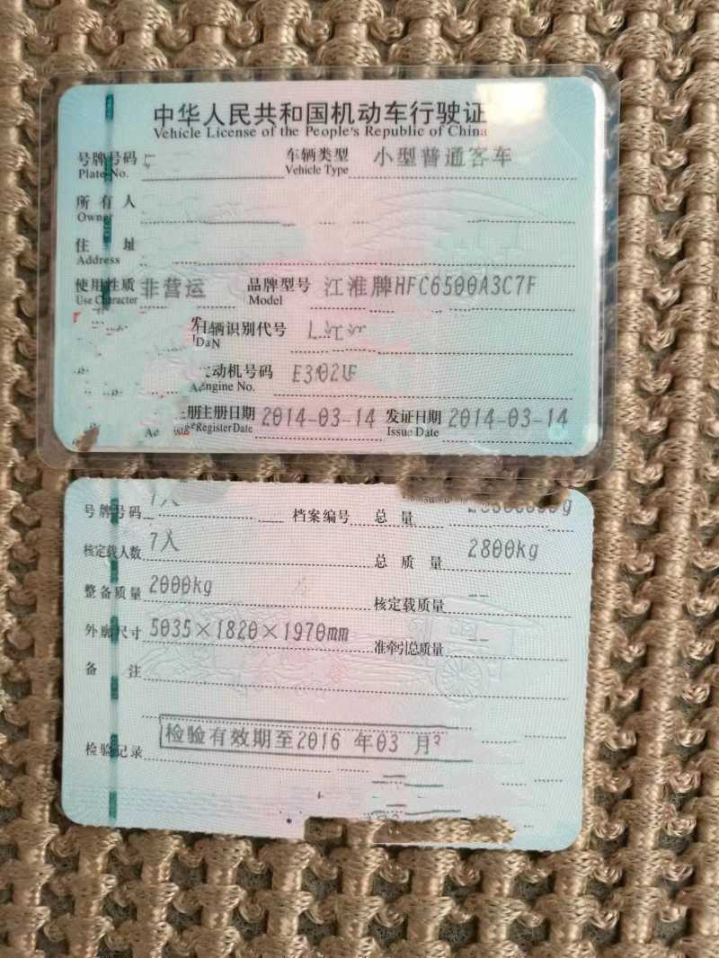 特价18000元,粤B蓝牌7座,2014年上牌江淮,汽油,发动机型号HFC4GA3-C,非营运,正常使用,定金留车。