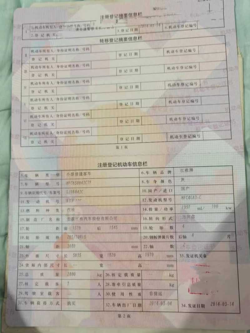 | 客车品牌 | 江淮客车 | 上牌时间 | 2014-03-20 |