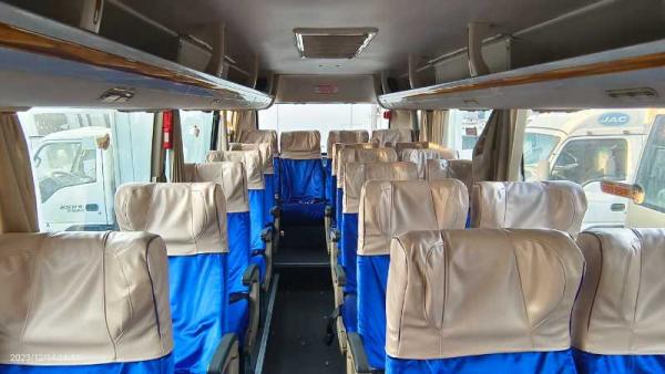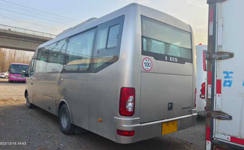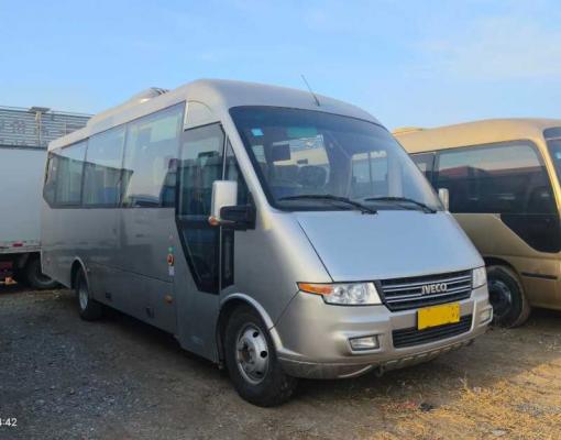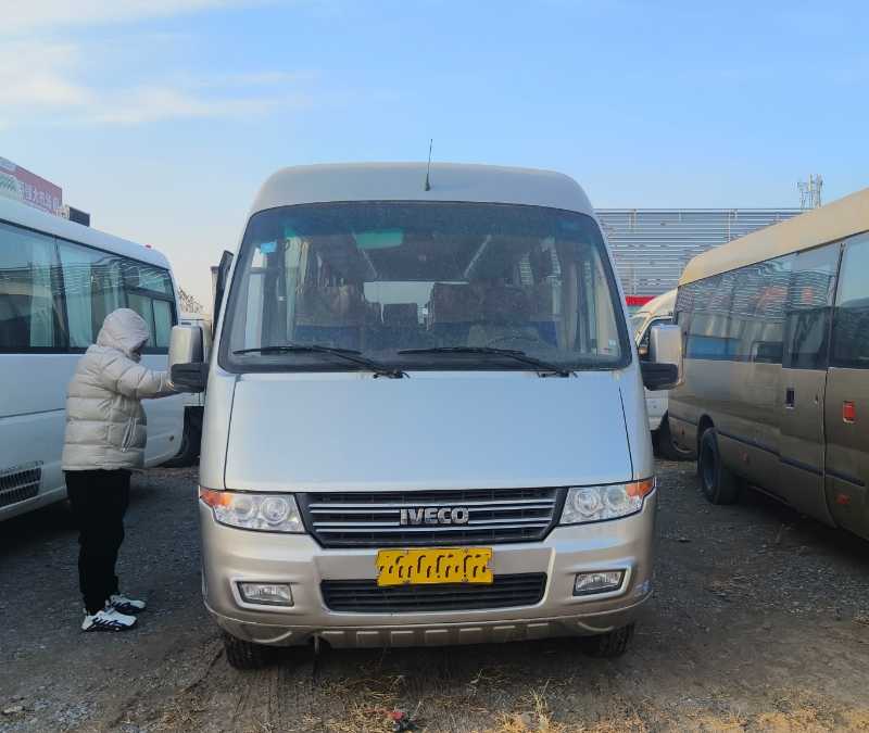 长春提车东北配国五23座3.0T超大行李舱旅游车[色]2018年8月上牌依维柯最高配大商务车,2+1皮面座椅,行李架,内饰空间大,顶置背包空调有暖气,自动外摆门,四轮盘刹 3.0T索菲姆涡轮增压机器 ,有缓速器 ,锅炉暖气 ,同款两台,吉林提车。