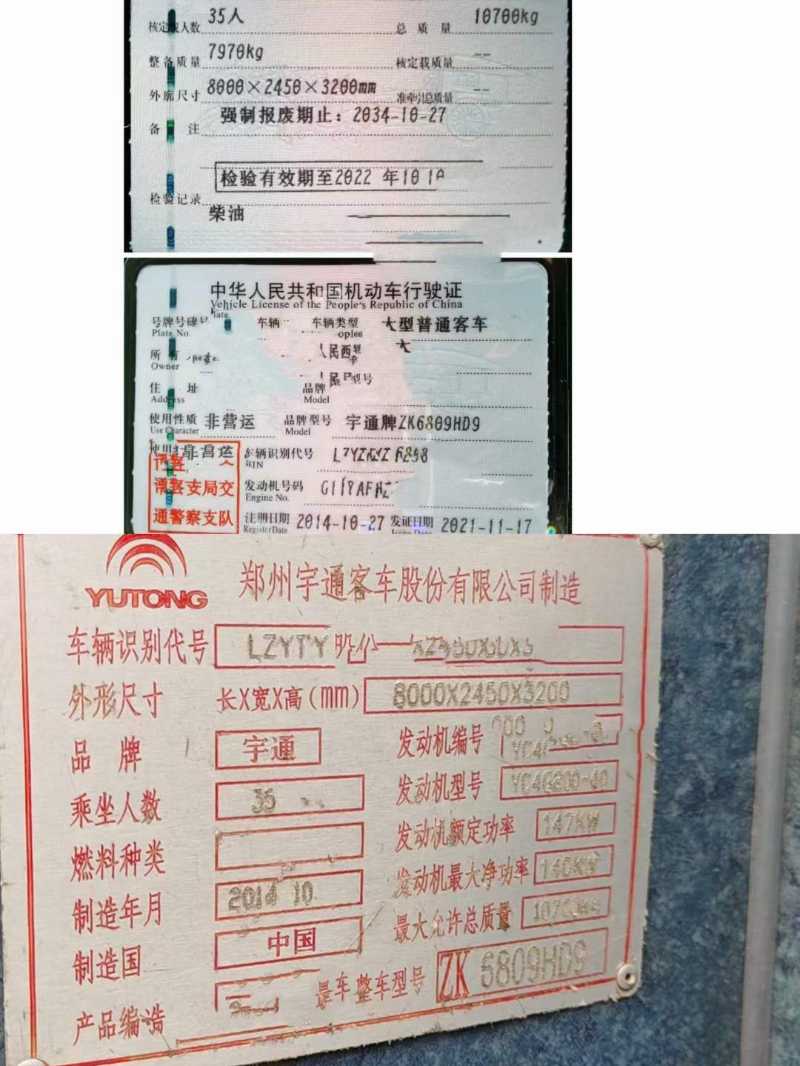 | 客车品牌 | 宇通客车 | 上牌时间 | 2014-10-15 |
