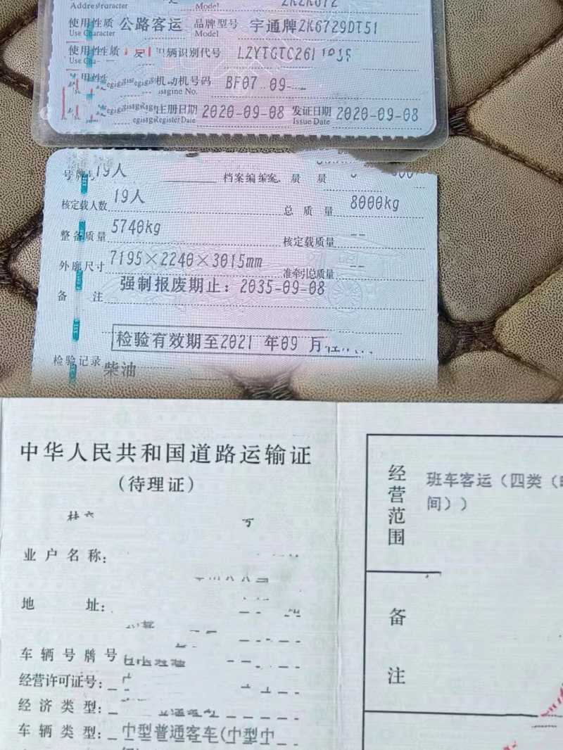 仅此一台19座中型中级抢手货,20年9月上牌宇通6729,公路客运广西牌,潍柴140发动机,缓速器,折叠门,车况Ok,包提双档。
