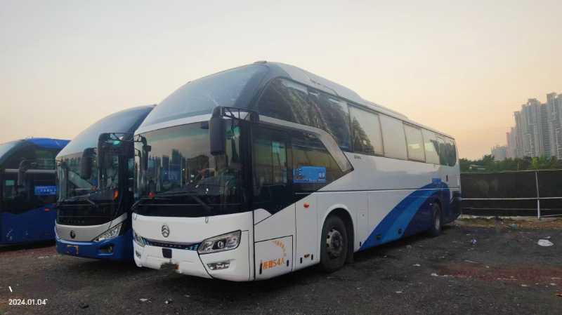 国六54座旅游车,2022年上牌金旅12米,玉柴330国六机头,气囊中门,通仓,行李架,司机独立驾驶,旅游客运可提营运.