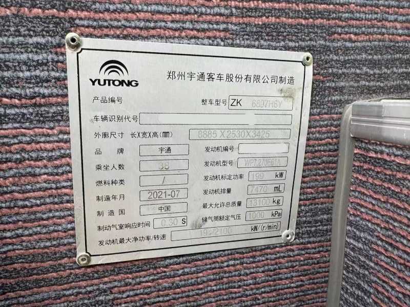 | 客车品牌 | 宇通客车 | 上牌时间 | 2021-08-10 |