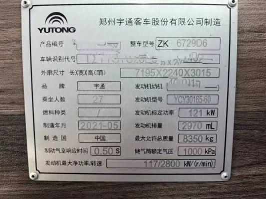 | 客车品牌 | 宇通客车 | 上牌时间 | 2021-07-19 |