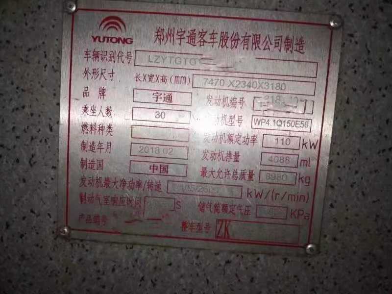 | 客车品牌 | 宇通客车 | 上牌时间 | 2018-01-18 |