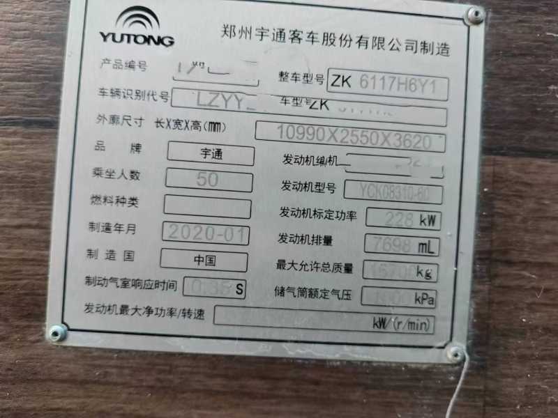 50座国六有公告车型[勾引]2020年上牌宇通6117气囊车,有中门,玉柴310马力,暖气,非营运,
