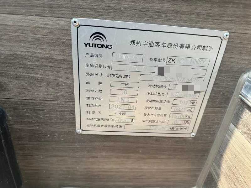 2021年5月 国六38座天然气宇通6907气囊客车