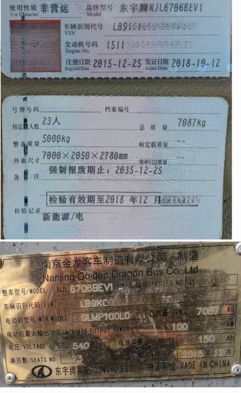 | 客车品牌 | 金龙客车 | 上牌时间 | 2015-12-24 |