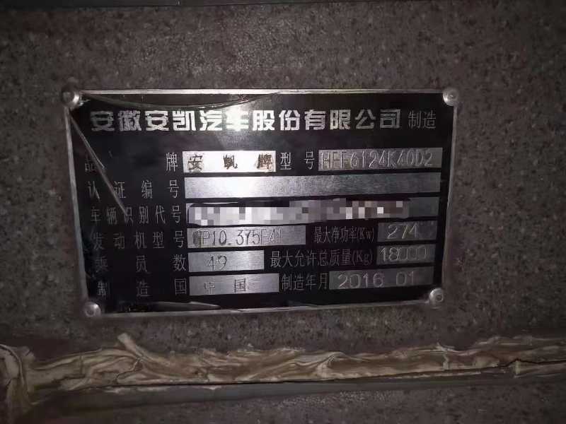 | 客车品牌 | 安凯客车 | 上牌时间 | 2016-02-16 |