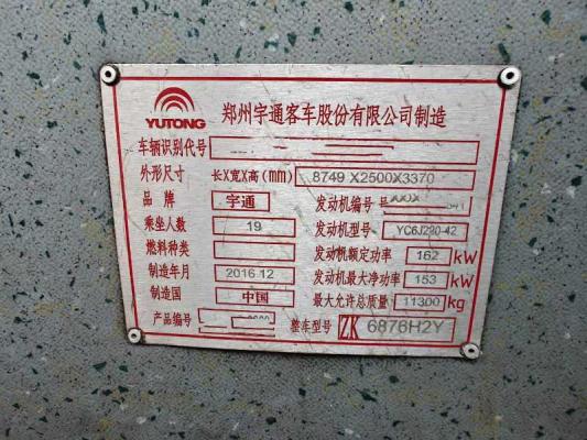 | 客车品牌 | 宇通客车 | 上牌时间 | 2016-12-21 |