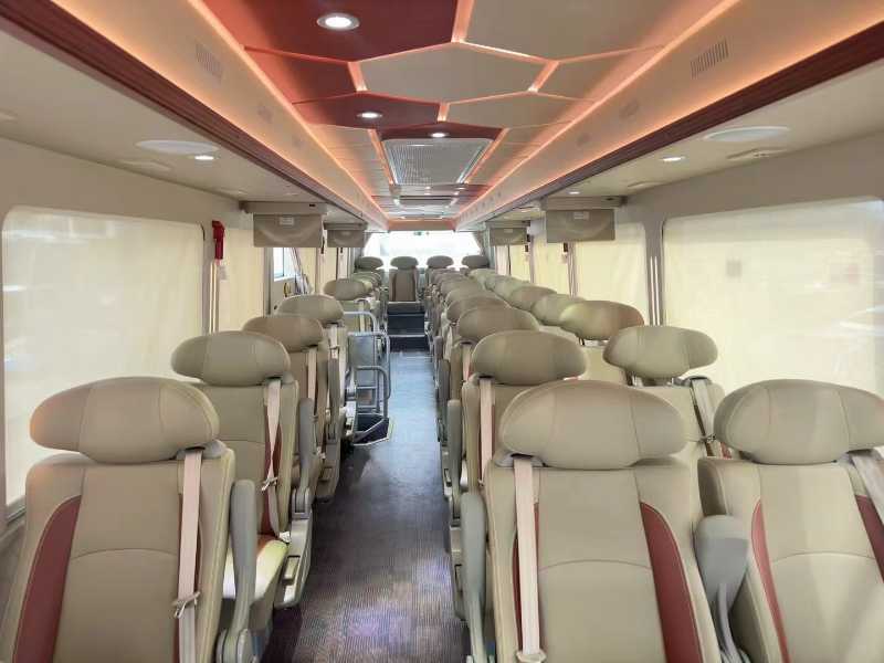 再来台准新国五12米宇通2加1型32座高级保姆车,2021年上牌宇通6122,非营运,2+1型商务座椅,秘书台,铝合金轮毂,保险审车全年,气囊底盘,油路加热,电动折叠电视,潍柴336机头。缓速器,高铁窗帘。整车JBL音响,氛围灯配置一大叠,表显才1万多公里嘎嘎新的准新车。