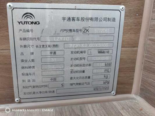 准新国六31座宇通6772非营运有公告,2023年9月 上牌宇通6772, 非营运 玉柴160 国六 东北配置 中控玻璃 锅炉 燃油加热 安全行驶1万公里 《重点有有营运公告》可转旅游客运 公路客运 ,