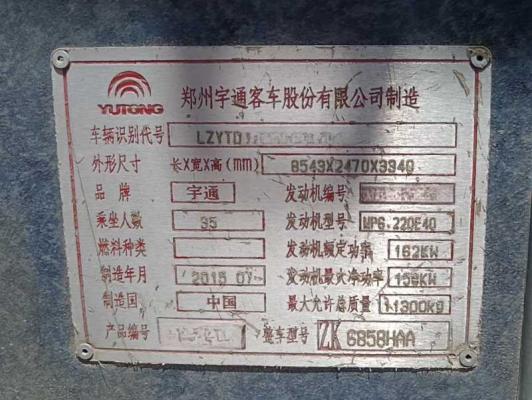 | 客车品牌 | 宇通客车 | 上牌时间 | 2015-07-14 |
