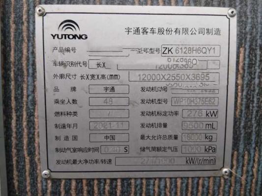 | 客车品牌 | 宇通客车 | 上牌时间 | 2021-12-08 |
