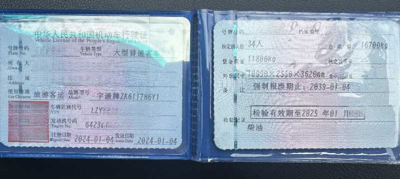 | 客车品牌 | 宇通客车 | 上牌时间 | 2024-01-16 |