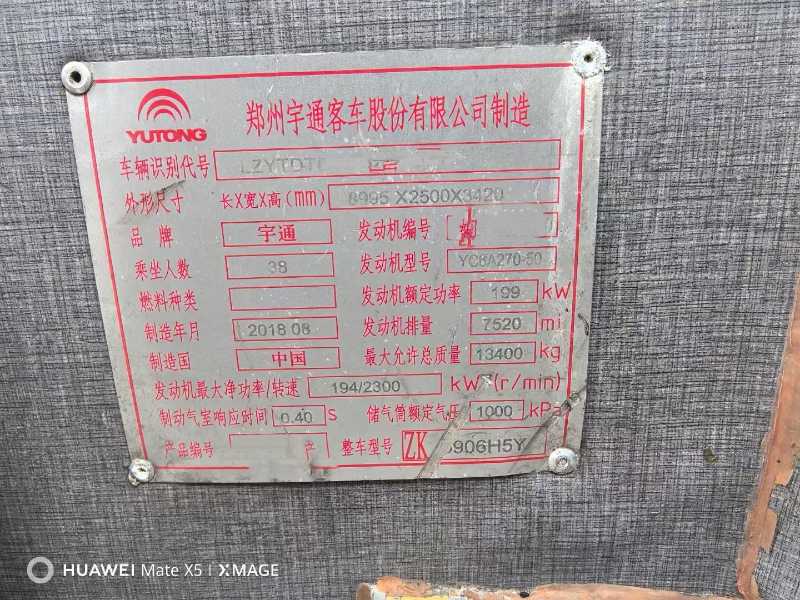 | 客车品牌 | 宇通客车 | 上牌时间 | 2018-09-20 |
