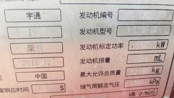 | 客车品牌 | 宇通客车 | 上牌时间 | 2020-01-15 |