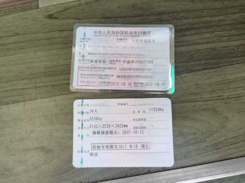 新增国六排放 34 座宇通 6827有公告,2022 年 10月上牌,玉柴 220 国六发动机,钢板避震,木纹地板,小杆挂档杆,行李架,行李舱,安全门,旅游客运可提营运,公里数很少。
