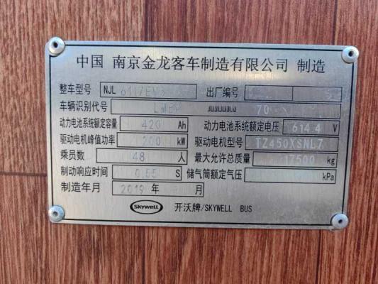 | 客车品牌 | 南京金龙 | 上牌时间 | 2019-04-24 |
